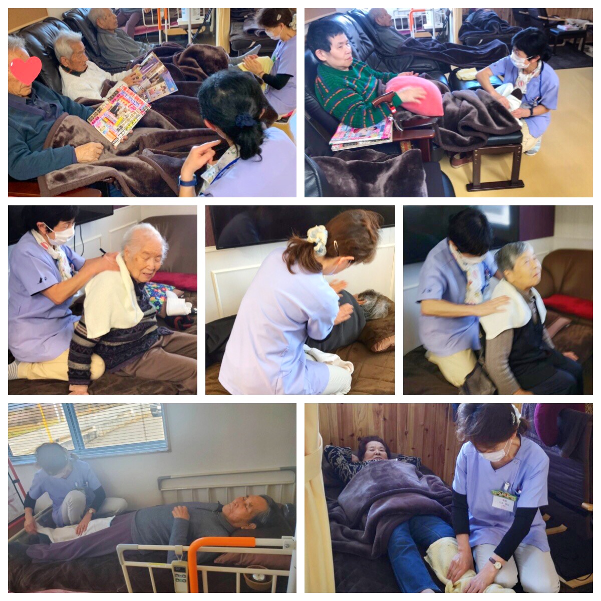 ※機能訓練前に硬直した筋肉をほぐす為、当センターではマッサージをおこなっております。機械では味わえない感触がとても大好評です。『やっぱ人の手だよね』とのお声が上がっております。