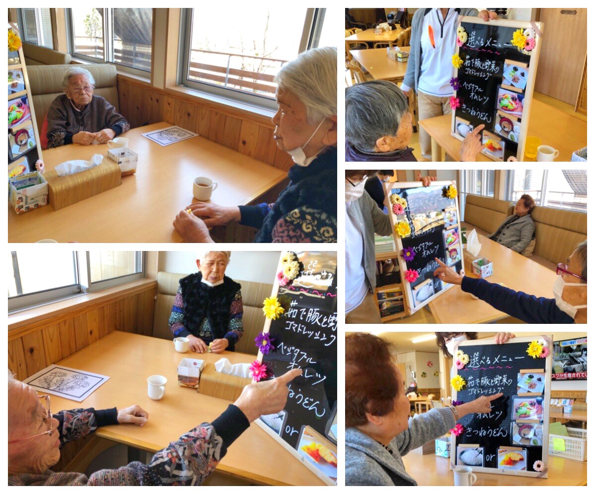 ※飲食店に来たような感覚や、「メニューを選ぶ楽しさ」を大事に思い、取組んでおります。(主食もライスかパンでお選びいただけます)※当センターでは特別食(ペースト、やわらか、きざみ)も対応しております。