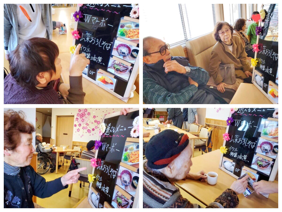 ※飲食店に来たような感覚や、「メニューを選ぶ楽しさ」を大事に思い、取組んでおります。(主食もライスかパンでお選びいただけます)※当センターでは特別食(ペースト、やわらか、きざみ)も対応しております。