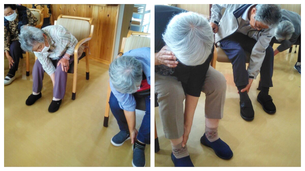 ※ゴム紐を使い、親指と人差し指だけで衣類着脱に必要なボタンを留める動作や、ゴム紐を上から下、下から上とくぐり着脱に必要な動作をおこないます。