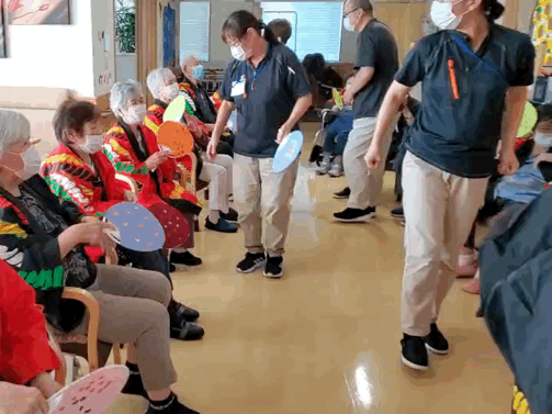 はっぴを着て盆踊り