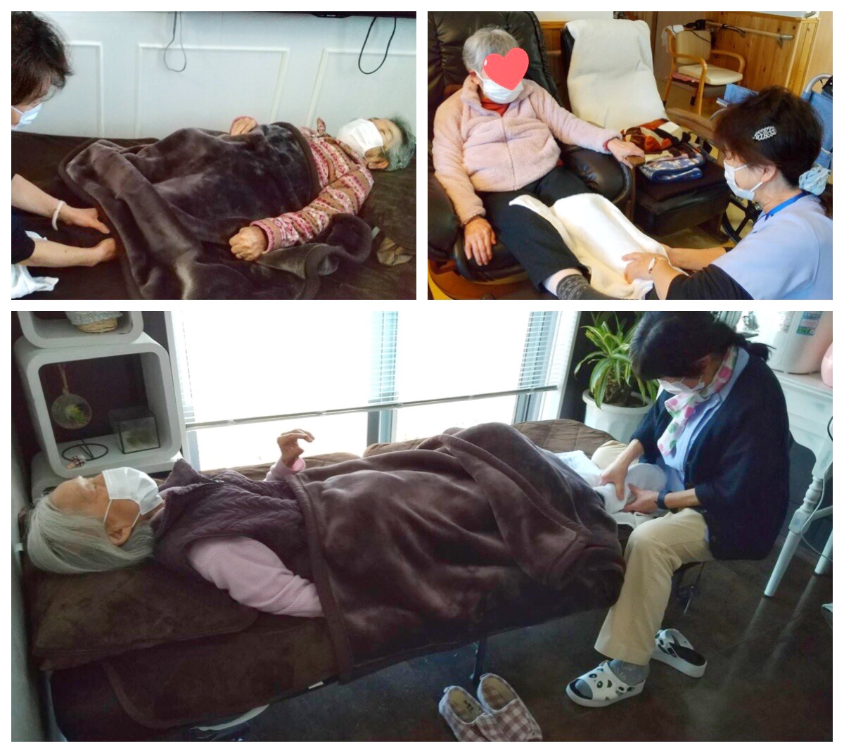 ※機能訓練前に硬直した筋肉をほぐす為、当センターではマッサージをおこなっております。機械では味わえない感触がとても大好評です。『やっぱ人の手だよね』とのお声が上がっております。