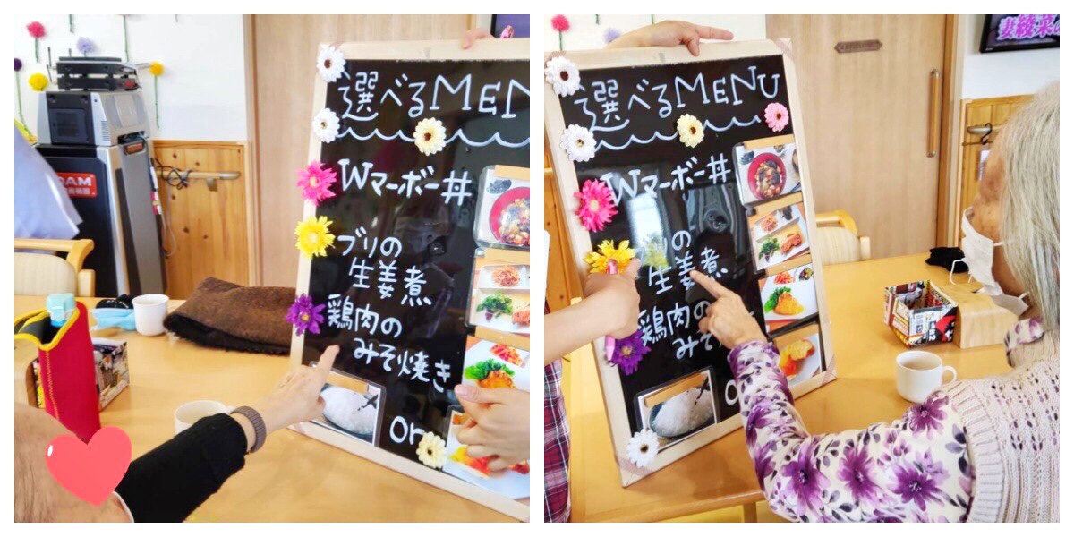 ※飲食店に来たような感覚や、「メニューを選ぶ楽しさ」を大事に思い、取組んでおります。(主食もライスかパンでお選びいただけます)※当センターでは特別食(ペースト、やわらか、きざみ)も対応しております。