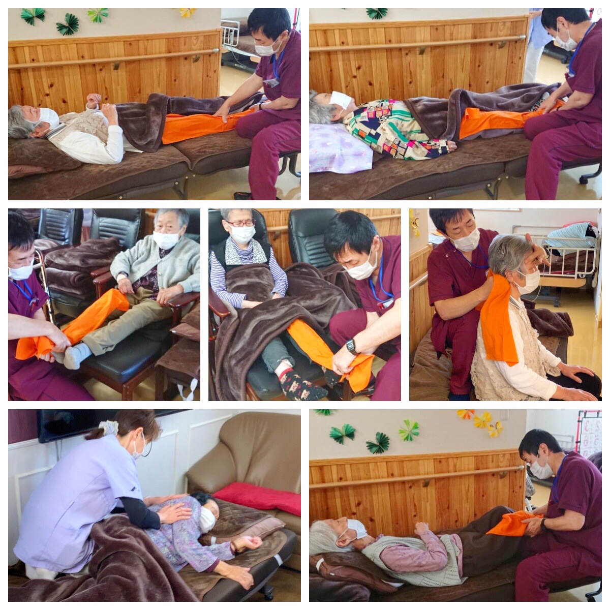 ※機能訓練前に硬直した筋肉をほぐす為、当センターではマッサージをおこなっております。機械では味わえない感触がとても大好評です。『やっぱ人の手だよね』とのお声が上がっております。