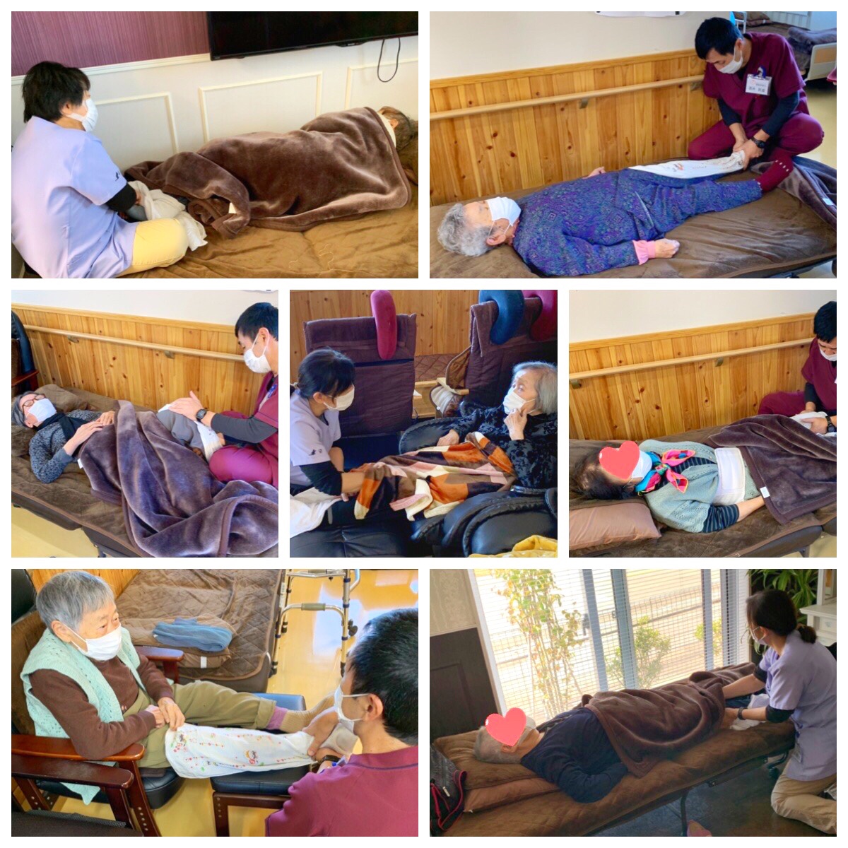 ※機能訓練前に硬直した筋肉をほぐす為、当センターではマッサージをおこなっております。機械では味わえない感触がとても大好評です。『やっぱ人の手だよね』とのお声が上がっております。
