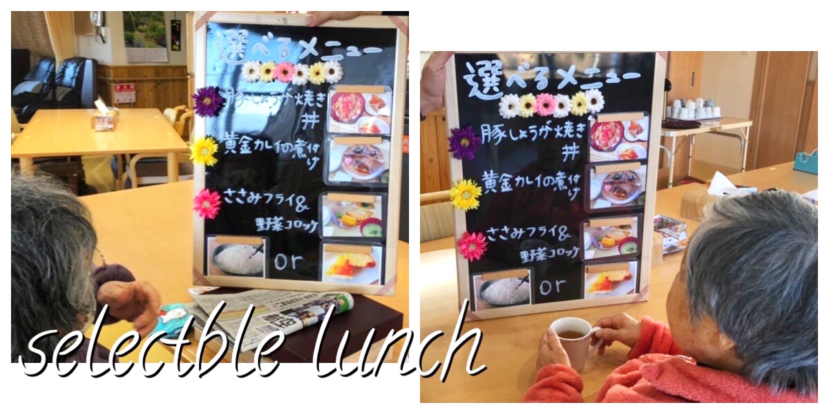 ※飲食店に来たような感覚や、「メニューを選ぶ楽しさ」を大事に思い、取組んでおります。(主食もライスかパンでお選びいただけます)※当センターでは特別食(ペースト、やわらか、きざみ)も対応しております。