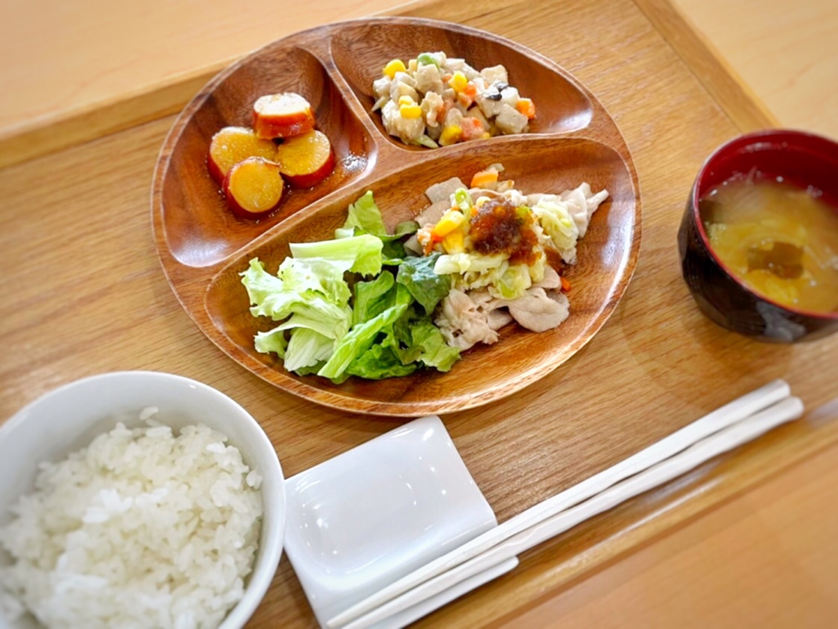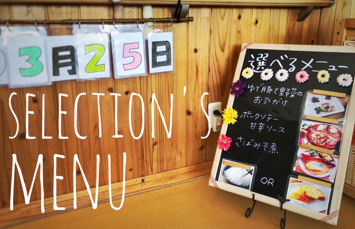 ※飲食店に来たような感覚や、「メニューを選ぶ楽しさ」を大事に思い、取組んでおります。(主食もライスかパンでお選びいただけます)※当センターでは特別食(ペースト、やわらか、きざみ)も対応しております。