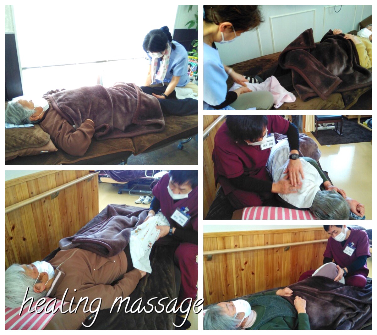 ※機能訓練前に硬直した筋肉をほぐす為、当センターではマッサージをおこなっております。機械では味わえない感触がとても大好評です。『やっぱ人の手だよね』とのお声が上がっております。