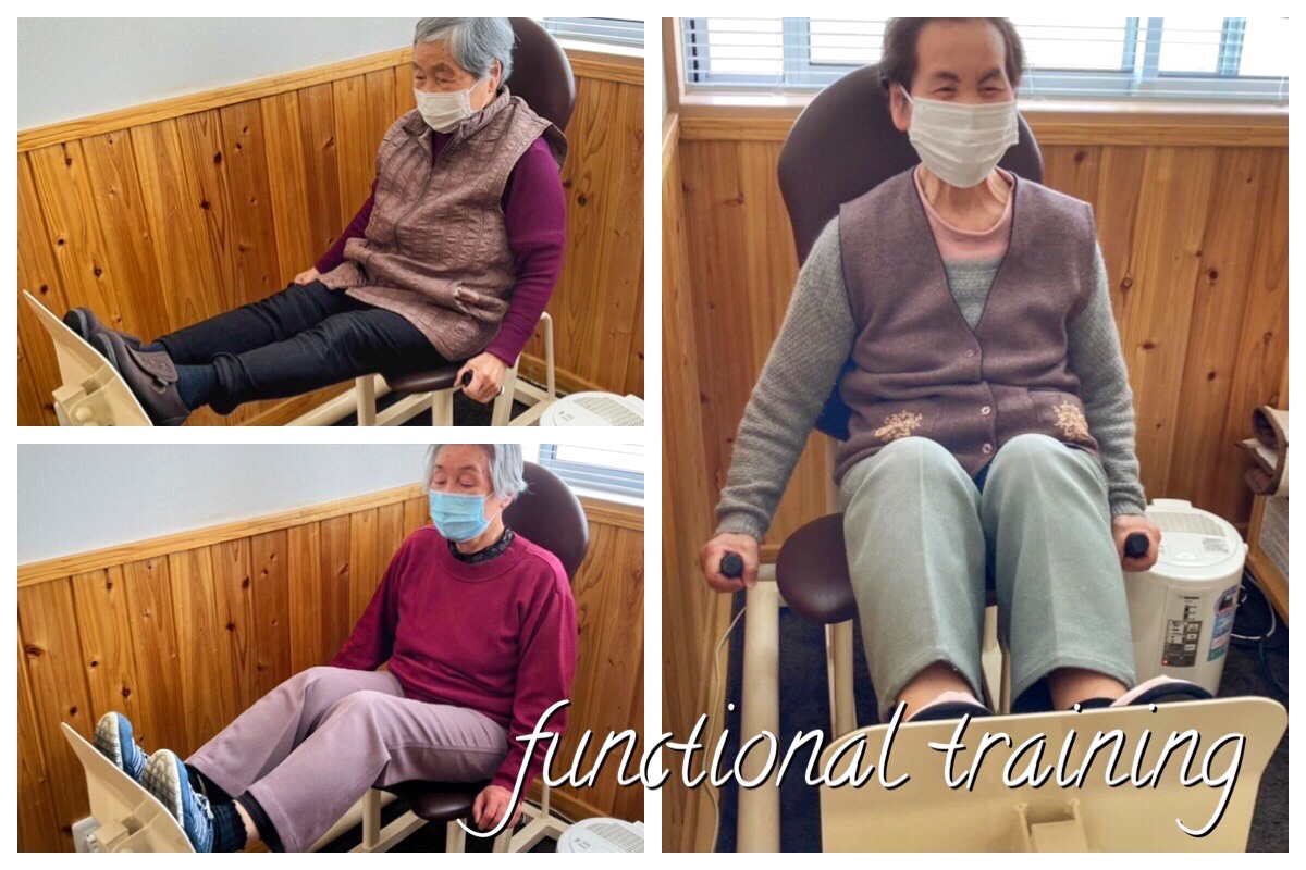 ※年齢と共に低下した筋力を鍛えることで、日々の生活を少しでも楽に過ごしていただけるよう、当センターでは機能訓練を取り入れております。低負荷高反復でおこなう持続的、且つ、疲労を残さない筋力アップ法で取り組んでおります。