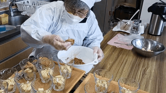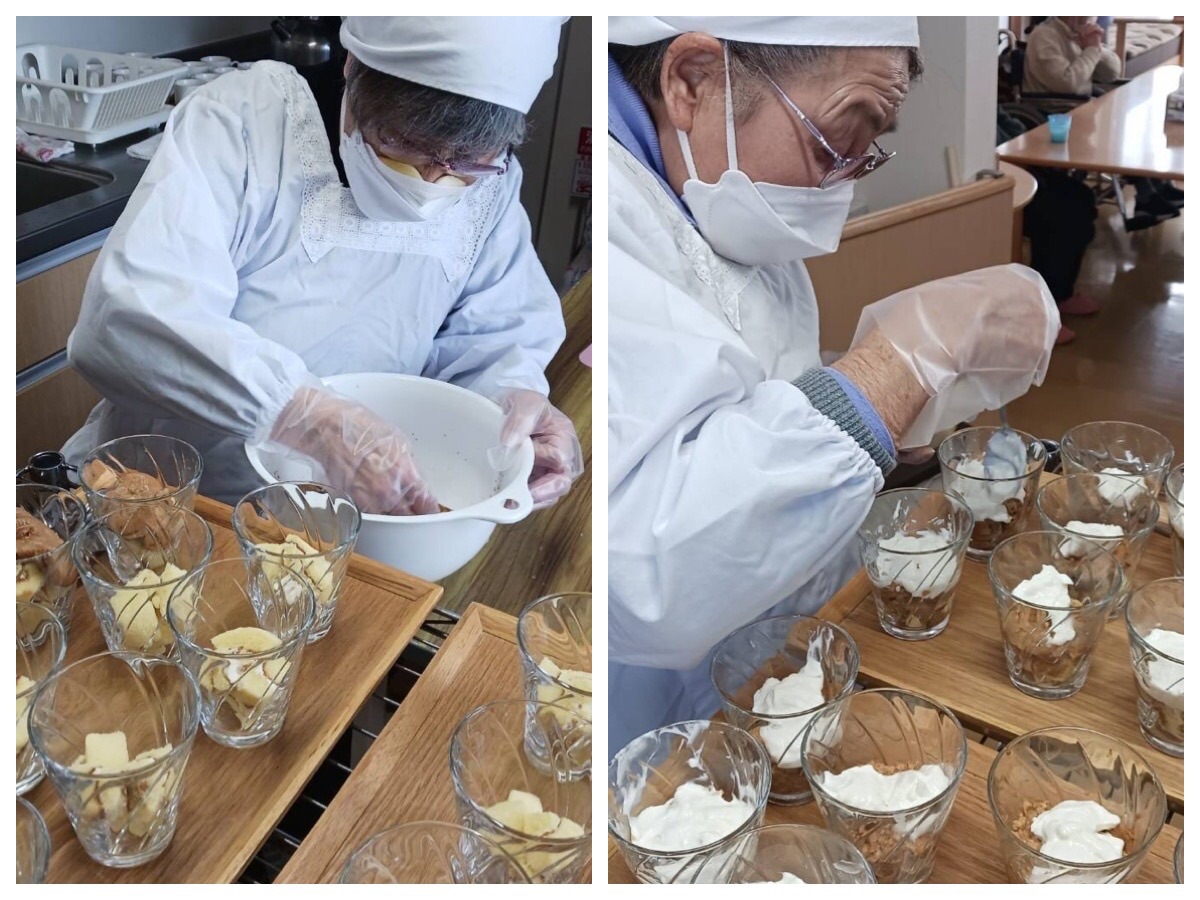 ココアパウダー、ホイップ、いちごを添えて仕上げました☆