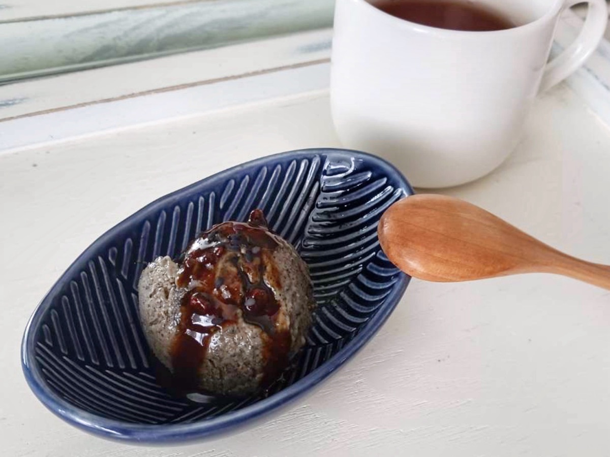黒蜜がけの黒ゴマアイス作り