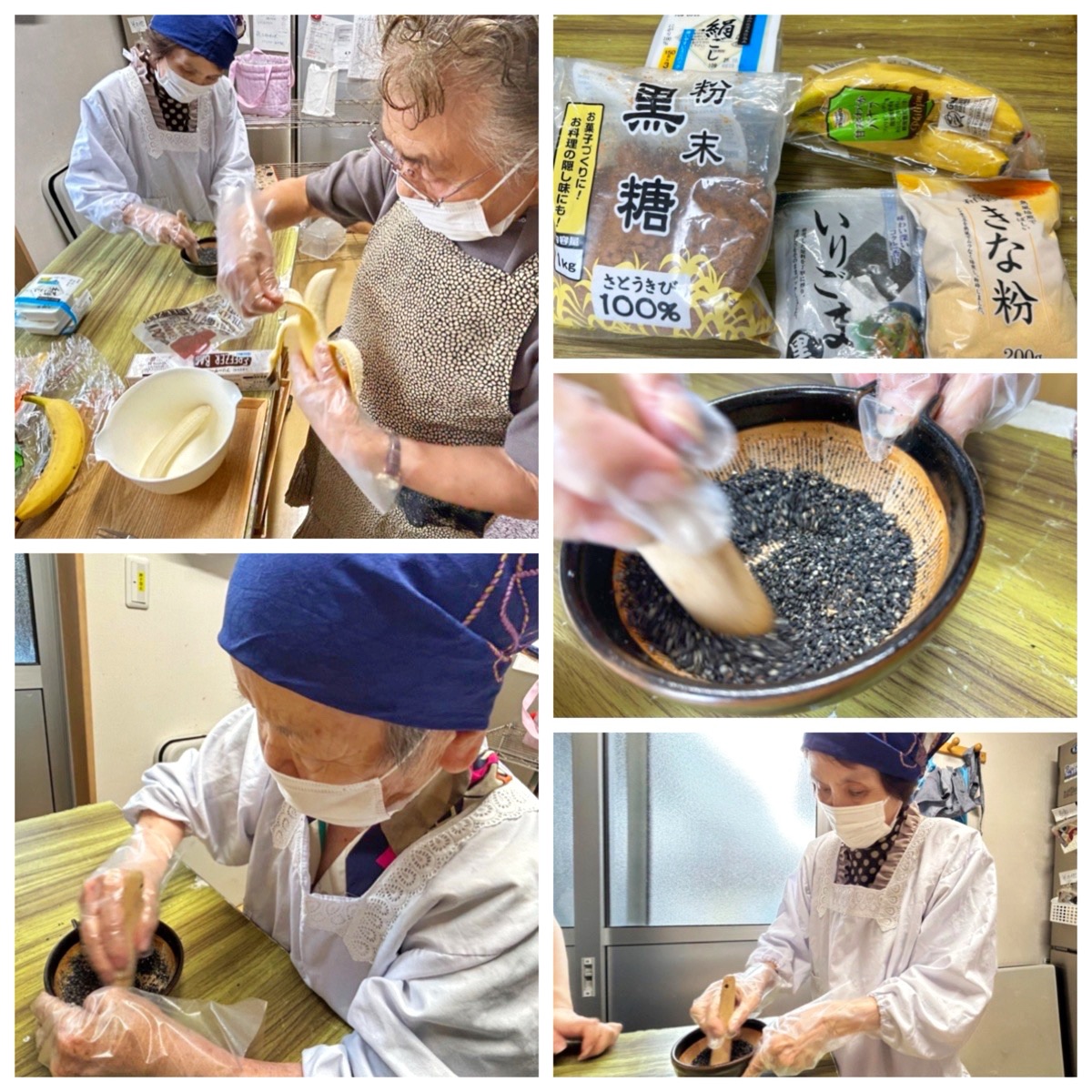 黒蜜がけの黒ゴマアイス作りをおこないました。