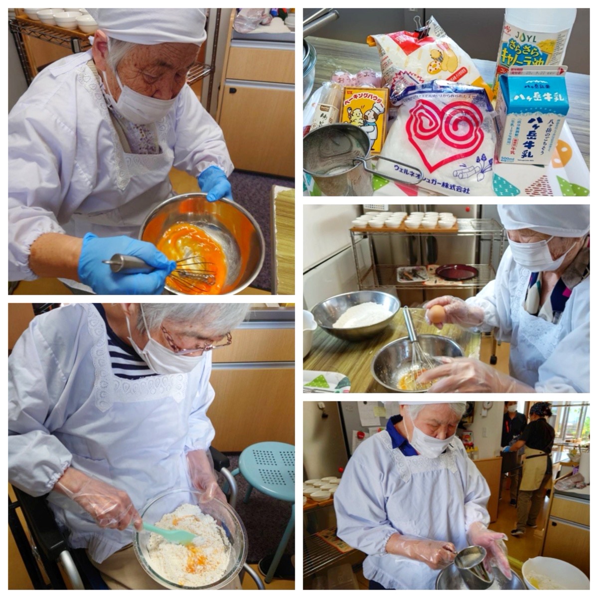 卵と砂糖、油、牛乳を混ぜて生地を作り