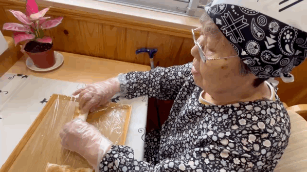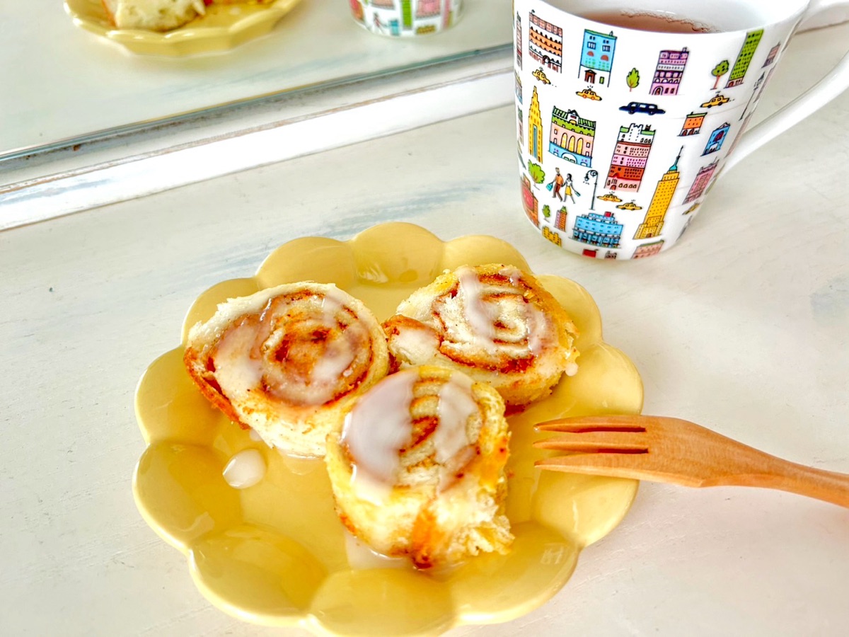 シナモンシュガーを振りかけ2枚重ねて丸めます!