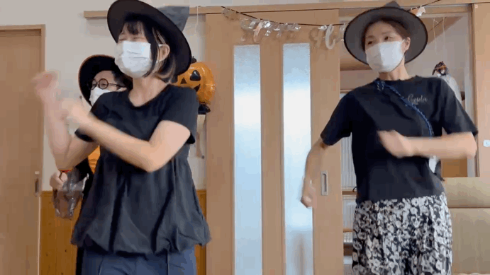 仮装したスタッフによる