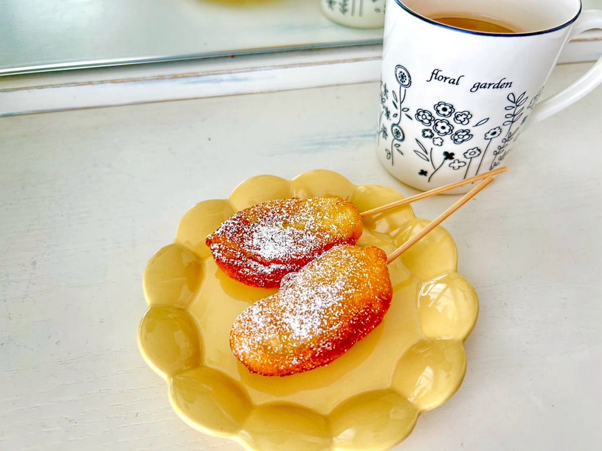 バナナを半分に切ってから小麦粉をまぶし、