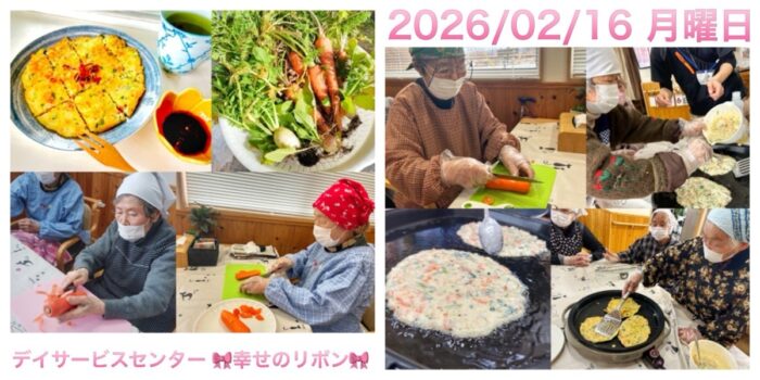 2026 年 2 月 16 日 1件の投稿 202602/16 ニンジンチヂミ作り 皆様こんにちは。 甲斐市 双葉 デイサービスセンター幸せのリボンです。 本日もリボンでは お客様をお守りするべく 感染予防を徹底しております。 &nb …READPOST 月曜日の日記 | おやつ作り | 全ての日記anamizu