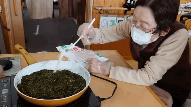 フライパンで緑茶茶葉を